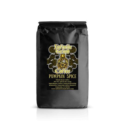 This seasonal favorite is available year round. The all natural flavoring has hints of pumpkin, cinnamon and nutmeg combined with a deep medium roast arabica coffee.